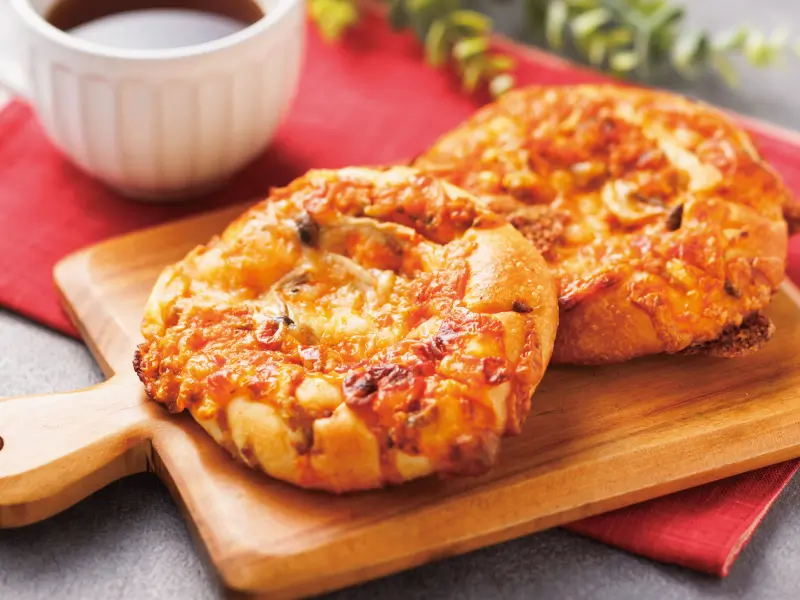 国産小麦100%の生地が生み出すふんわりモッチリとした口あたりと、オリーブオイルによる香ばしさが魅力的。現在は、きのこの食感と挽き肉の旨味をピザソースとクリームチーズでまとめあげた、濃厚で深みある味わいのものを販売中。肌寒い今の時期こそ食べたくなる一品。