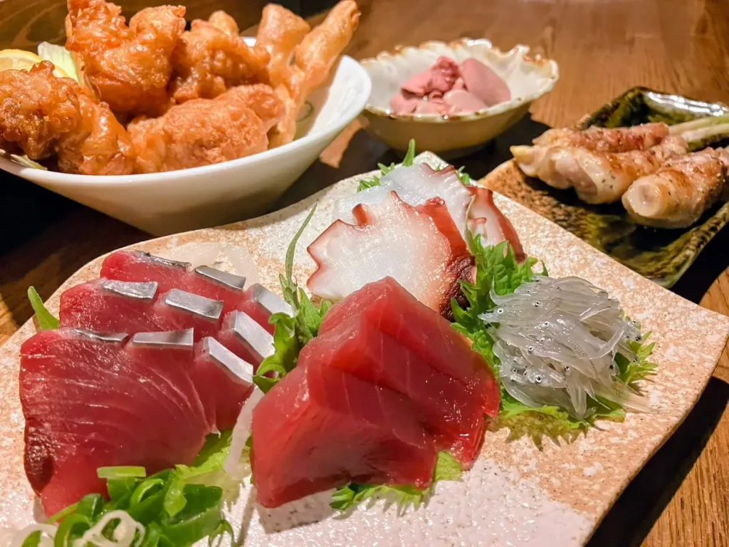 新鮮な刺身、串焼き、おすすめの一品が勢揃い!カウンターで静かに、仲間とワイワイでも大歓迎の店。年末も年始もパーッと万福に楽しんでは?