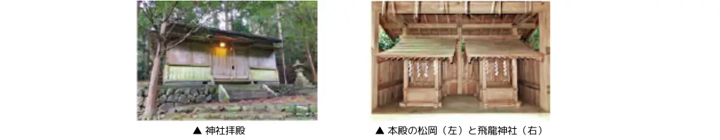 藤枝市旧岡部町の廻沢に飛龍神社があります。古くから水神として、深い信仰を集めていました。そして、その隣には、幕臣松岡萬を祀った松岡神社があります。この神社は、明治3年、松岡が存命中に廻沢の人々がその徳を慕い、生き神として祀ったもので、こうしたものを生祠(せいし)といいます。県内にはもう1ヶ所、同様に松岡萬を祀った生祠池主神社(いけぬしじんじゃ)が磐田市にあります。