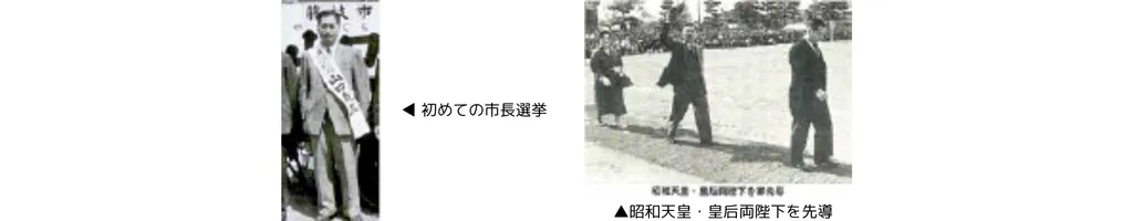 昭和22年焼津の昭和水産工業の専務取締役となる一方で、26年、西益津村長に就任。昭和29年藤枝町長を経て、初代藤枝市長に就任しました。
